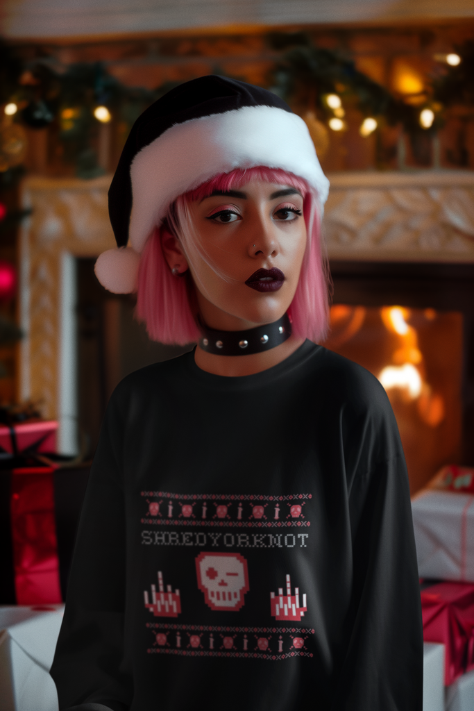 This holiday season, take your festive spirit to the next level with our bold ShredyorKnot F%k Christmas Long Sleeve Sweater Collection! For those who are a little Knoty and proud of it, this product is all about breaking the holiday mold with a dose of irreverence and a whole lot of Humor. Featuring the cheeky “ShredyorKnot” slogan with a twist, this Long Sleever brings the perfect blend of naughty and nice to your wardrobe.