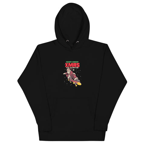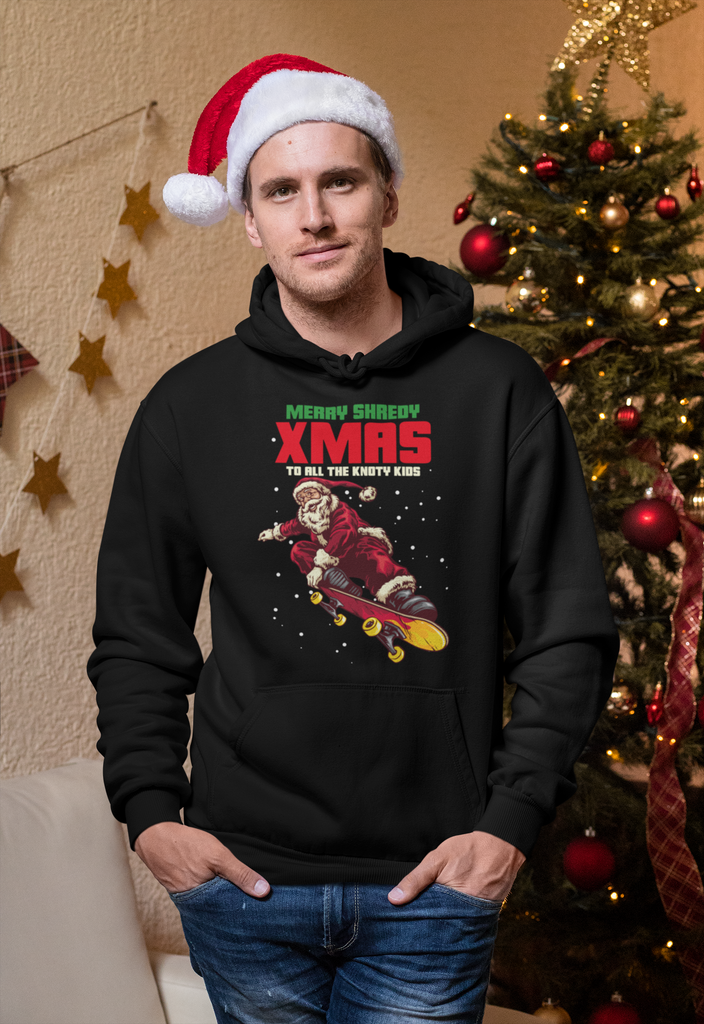 Get ready to sleigh the holiday season with the "Merry Shredy Xmas" Hoodie! Perfect for the rad rebels and naughty kids at heart, this hoodie features a unique design of Santa shredding on a skateboard, bringing festive vibes with an edge.