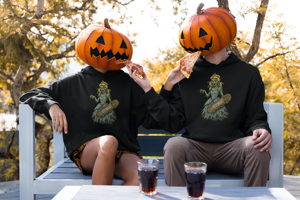 The fairytale just took a gnarly twist. Meet our Zombie Princess, a tattered princess who traded her glass slipper for grip tape. Rocking a decayed ball gown and clutching a beat up skateboard branded with ShredyorKnot, this design blends horror, skate, and underground street art into one killer graphic.
