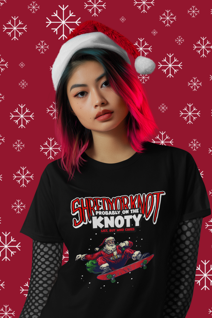 Whether you're skating, hanging out with friends, or just embracing the "knotty" side of Christmas, this Tee lets you shred in style.